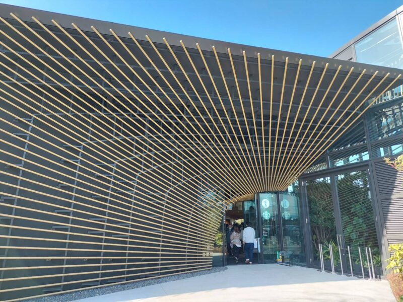 帰りは竹をふんだんに使った隈研吾設計の建物をみにいきました