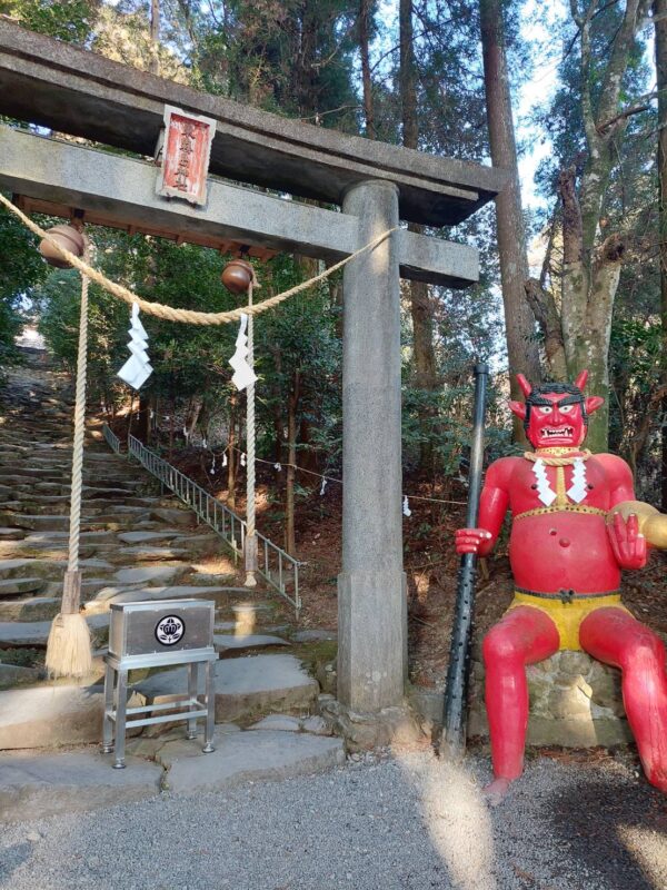 神社⛩の入り口で赤鬼が迎えてくれました